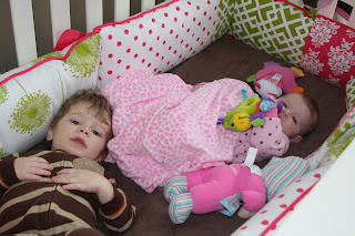 Happy Valentine's Everyone! Our two little ones enjoyed the weekend laughing and playing together! Graham was so excited to climb into bed with his little sister! Maybe we should have invested in just one crib instead of two!
